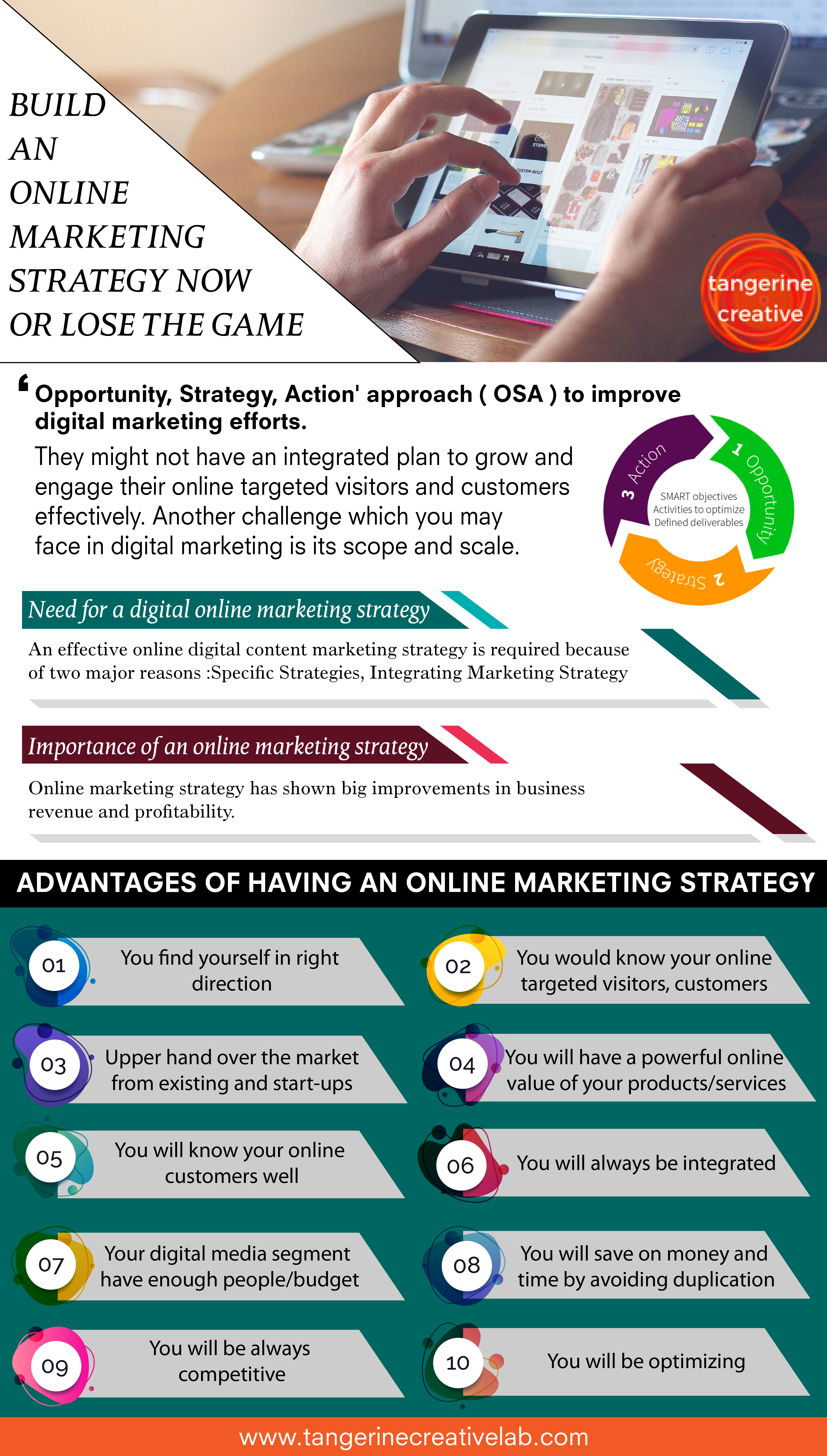 Setting up successful businesses remains a challenge as one may not know how vital digital and mobile channels are today for acquiring and retaining customers. They might not have an integrated plan to grow and engage their online targeted visitors and customers effectively. Another challenge which you may face in digital marketing is its scope and scale. Some beneficial digital marketing techniques like search, social and email marketing, are available to improve the digital experience of your website or blog. Always follow the ‘Opportunity, Strategy, Action’ approach ( OSA ) to improve digital marketing efforts. for the successful online business, you have to build an online marketing strategy.